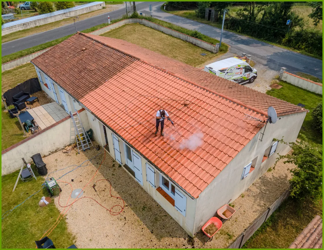 Chez Le Roux de Secours, nous utilisons une méthode écologique et non agressive : le nettoyage à la vapeur basse pression, sans produits chimiques. Cette technique innovante permet de nettoyer efficacement, tout en préservant l’étanchéité et la structure de votre toit.